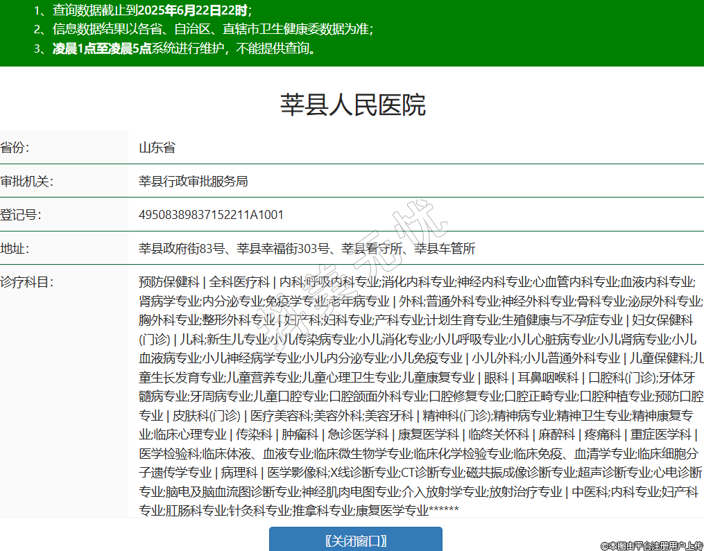 省份:山東省審批機(jī)關(guān):莘縣行政審批服務(wù)局登記號(hào):49508389837152211A1001地址:莘縣政府街83號(hào)、莘縣幸福街303號(hào)、莘縣看守所、莘縣車管所診療科目:預(yù)防保健科 | 全科醫(yī)療科 | 內(nèi)科;呼吸內(nèi)科專業(yè);消化內(nèi)科專業(yè);神經(jīng)內(nèi)科專業(yè);心血管內(nèi)科專業(yè);血液內(nèi)科專業(yè);腎病學(xué)專業(yè);內(nèi)分泌專業(yè);免疫學(xué)專業(yè);老年病專業(yè) | 外科;普通外科專業(yè);神經(jīng)外科專業(yè);骨科專業(yè);泌尿外科專業(yè);胸外科專業(yè);整形外科專業(yè) | 婦產(chǎn)科;婦科專業(yè);產(chǎn)科專業(yè);計(jì)劃生育專業(yè);生殖健康與不孕癥專業(yè) | 婦女保健科(門診) | 兒科;新生兒專業(yè);小兒傳染病專業(yè);小兒消化專業(yè);小兒呼吸專業(yè);小兒心臟病專業(yè);小兒腎病專業(yè);小兒血液病專業(yè);小兒神經(jīng)病學(xué)專業(yè);小兒內(nèi)分泌專業(yè);小兒免疫專業(yè) | 小兒外科;小兒普通外科專業(yè) | 兒童保健科;兒童生長發(fā)育專業(yè);兒童營養(yǎng)專業(yè);兒童心理衛(wèi)生專業(yè);兒童康復(fù)專業(yè) | 眼科 | 耳鼻咽喉科 | 口腔科(門診);牙體牙髓病專業(yè);牙周病專業(yè);兒童口腔專業(yè);口腔頜面外科專業(yè);口腔修復(fù)專業(yè);口腔正畸專業(yè);口腔種植專業(yè);預(yù)防口腔專業(yè) | 皮膚科(門診) | 醫(yī)療美容科;美容外科;美容牙科 | 精神科(門診);精神病專業(yè);精神衛(wèi)生專業(yè);精神康復(fù)專業(yè);臨床心理專業(yè) | 傳染科 | 腫瘤科 | 急診醫(yī)學(xué)科 | 康復(fù)醫(yī)學(xué)科 | 臨終關(guān)懷科 | 麻醉科 | 疼痛科 | 重癥醫(yī)學(xué)科 | 醫(yī)學(xué)檢驗(yàn)科;臨床體液、血液專業(yè);臨床微生物學(xué)專業(yè);臨床化學(xué)檢驗(yàn)專業(yè);臨床免疫、血清學(xué)專業(yè);臨床細(xì)胞分子遺傳學(xué)專業(yè) | 病理科 | 醫(yī)學(xué)影像科;X線診斷專業(yè);CT診斷專業(yè);磁共振成像診斷專業(yè);超聲診斷專業(yè);心電診斷專業(yè);腦電及腦血流圖診斷專業(yè);神經(jīng)肌肉電圖專業(yè);介入放射學(xué)專業(yè);放射治療專業(yè) | 中醫(yī)科;內(nèi)科專業(yè);婦產(chǎn)科專業(yè);肛腸科專業(yè);針灸科專業(yè);推拿科專業(yè);康復(fù)醫(yī)學(xué)專業(yè)******級(jí)別:二級(jí)法定代表人:李文元主要負(fù)責(zé)人:李文元執(zhí)業(yè)許可證有效期:2025/03/19 -至- 2037/10/23 -