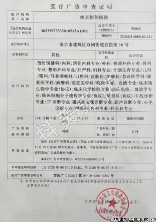 機構名稱:南京恒信醫(yī)院