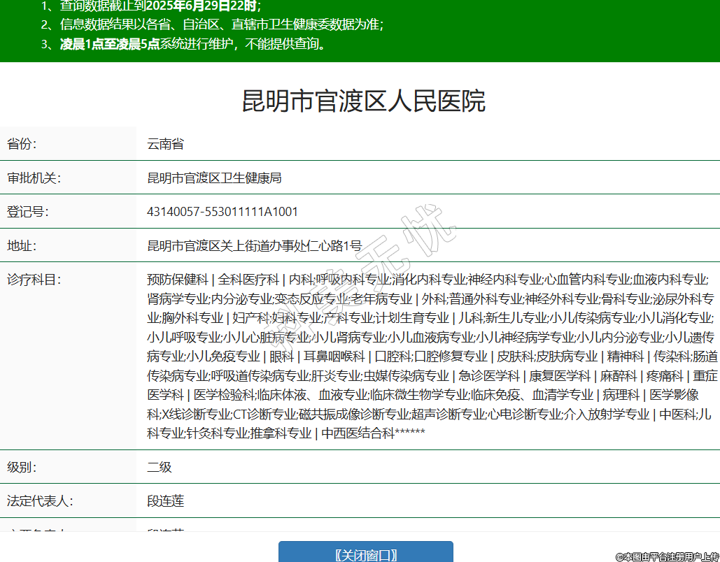 省份:云南省審批機(jī)關(guān):昆明市官渡區(qū)衛(wèi)生健康局登記號(hào):43140057-553011111A1001地址:昆明市官渡區(qū)關(guān)上街道辦事處仁心路1號(hào)診療科目:預(yù)防保健科 | 全科醫(yī)療科 | 內(nèi)科;呼吸內(nèi)科專業(yè);消化內(nèi)科專業(yè);神經(jīng)內(nèi)科專業(yè);心血管內(nèi)科專業(yè);血液內(nèi)科專業(yè);腎病學(xué)專業(yè);內(nèi)分泌專業(yè);變態(tài)反應(yīng)專業(yè);老年病專業(yè) | 外科;普通外科專業(yè);神經(jīng)外科專業(yè);骨科專業(yè);泌尿外科專業(yè);胸外科專業(yè) | 婦產(chǎn)科;婦科專業(yè);產(chǎn)科專業(yè);計(jì)劃生育專業(yè) | 兒科;新生兒專業(yè);小兒傳染病專業(yè);小兒消化專業(yè);小兒呼吸專業(yè);小兒心臟病專業(yè);小兒腎病專業(yè);小兒血液病專業(yè);小兒神經(jīng)病學(xué)專業(yè);小兒內(nèi)分泌專業(yè);小兒遺傳病專業(yè);小兒免疫專業(yè) | 眼科 | 耳鼻咽喉科 | 口腔科;口腔修復(fù)專業(yè) | 皮膚科;皮膚病專業(yè) | 精神科 | 傳染科;腸道傳染病專業(yè);呼吸道傳染病專業(yè);肝炎專業(yè);蟲媒傳染病專業(yè) | 急診醫(yī)學(xué)科 | 康復(fù)醫(yī)學(xué)科 | 麻醉科 | 疼痛科 | 重癥醫(yī)學(xué)科 | 醫(yī)學(xué)檢驗(yàn)科;臨床體液、血液專業(yè);臨床微生物學(xué)專業(yè);臨床免疫、血清學(xué)專業(yè) | 病理科 | 醫(yī)學(xué)影像科;X線診斷專業(yè);CT診斷專業(yè);磁共振成像診斷專業(yè);超聲診斷專業(yè);心電診斷專業(yè);介入放射學(xué)專業(yè) | 中醫(yī)科;兒科專業(yè);針灸科專業(yè);推拿科專業(yè) | 中西醫(yī)結(jié)合科******級(jí)別:二級(jí)法定代表人:段連蓮主要負(fù)責(zé)人:段連蓮執(zhí)業(yè)許可證有效期:2015/01/01 -至- 2029/12/31 -