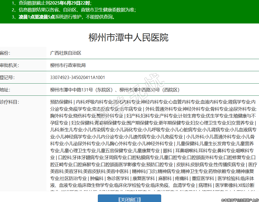 省份:廣西壯族自治區(qū)審批機(jī)關(guān):柳州市行政審批局登記號(hào):33074923-345020411A1001地址:柳州市潭中中路131號(hào)(東院區(qū))、柳州市潭中西路30號(hào)(西院區(qū))診療科目:預(yù)防保健科 | 內(nèi)科;呼吸內(nèi)科專業(yè);消化內(nèi)科專業(yè);神經(jīng)內(nèi)科專業(yè);心血管內(nèi)科專業(yè);血液內(nèi)科專業(yè);腎病學(xué)專業(yè);內(nèi)分泌專業(yè);免疫學(xué)專業(yè);變態(tài)反應(yīng)專業(yè);老年病專業(yè) | 外科;普通外科專業(yè);神經(jīng)外科專業(yè);骨科專業(yè);泌尿外科專業(yè);胸外科專業(yè);燒傷科專業(yè);整形外科專業(yè) | 婦產(chǎn)科;婦科專業(yè);產(chǎn)科專業(yè);計(jì)劃生育專業(yè);優(yōu)生學(xué)專業(yè);生殖健康與不孕癥專業(yè) | 婦女保健科;青春期保健專業(yè);圍產(chǎn)期保健專業(yè);更年期保健專業(yè);婦女心理衛(wèi)生專業(yè);婦女營養(yǎng)專業(yè) | 兒科;新生兒專業(yè);小兒傳染病專業(yè);小兒消化專業(yè);小兒呼吸專業(yè);小兒心臟病專業(yè);小兒腎病專業(yè);小兒血液病專業(yè);小兒神經(jīng)病學(xué)專業(yè);小兒內(nèi)分泌專業(yè);小兒遺傳病專業(yè);小兒免疫專業(yè) | 小兒外科;小兒普通外科專業(yè);小兒骨科專業(yè);小兒泌尿外科專業(yè);小兒胸心外科專業(yè);小兒神經(jīng)外科專業(yè) | 兒童保健科;兒童生長發(fā)育專業(yè);兒童營養(yǎng)專業(yè);兒童心理衛(wèi)生專業(yè);兒童五官保健專業(yè);兒童康復(fù)專業(yè) | 眼科 | 耳鼻咽喉科;耳科專業(yè);鼻科專業(yè);咽喉科專業(yè) | 口腔科;牙體牙髓病專業(yè);牙周病專業(yè);口腔粘膜病專業(yè);兒童口腔專業(yè);口腔頜面外科專業(yè);口腔修復(fù)專業(yè);口腔正畸專業(yè);口腔麻醉專業(yè);口腔頜面醫(yī)學(xué)影像專業(yè);預(yù)防口腔專業(yè) | 皮膚科;皮膚病專業(yè);性傳播疾病專業(yè) | 醫(yī)療美容科;美容牙科;美容皮膚科;美容中醫(yī)科 | 精神科(門診);精神病專業(yè);精神衛(wèi)生專業(yè);藥物依賴專業(yè);精神康復(fù)專業(yè);社區(qū)防治專業(yè) | 腫瘤科 | 急診醫(yī)學(xué)科 | 康復(fù)醫(yī)學(xué)科 | 麻醉科 | 疼痛科 | 重癥醫(yī)學(xué)科 | 醫(yī)學(xué)檢驗(yàn)科;臨床體液、血液專業(yè);臨床微生物學(xué)專業(yè);臨床化學(xué)檢驗(yàn)專業(yè);臨床免疫、血清學(xué)專業(yè) | 病理科 | 醫(yī)學(xué)影像科;X線診斷專業(yè);CT診斷專業(yè);磁共振成像診斷專業(yè);超聲診斷專業(yè);心電診斷專業(yè);腦電及腦血流圖診斷專業(yè) | 中醫(yī)科;內(nèi)科專業(yè);外科專業(yè);婦產(chǎn)科專業(yè);兒科專業(yè);骨傷科專業(yè);肛腸科專業(yè);老年病科專業(yè);針灸科專業(yè);推拿科專業(yè);康復(fù)醫(yī)學(xué)專業(yè) | 中西醫(yī)結(jié)合科******級(jí)別:二級(jí)法定代表人:劉媛主要負(fù)責(zé)人:劉媛執(zhí)業(yè)許可證有效期:2024/08/29 -至- 2033/01/10 -