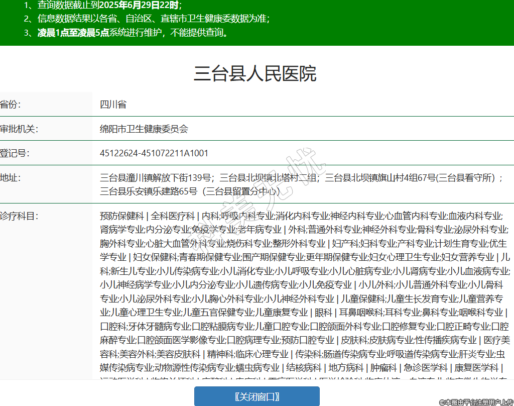 省份:四川省審批機(jī)關(guān):綿陽(yáng)市衛(wèi)生健康委員會(huì)登記號(hào):45122624-451072211A1001地址:三臺(tái)縣潼川鎮(zhèn)解放下街139號(hào);三臺(tái)縣北壩鎮(zhèn)北塔村二組;三臺(tái)縣北壩鎮(zhèn)旗山村4組67號(hào)(三臺(tái)縣看守所);三臺(tái)縣樂(lè)安鎮(zhèn)樂(lè)建路65號(hào)(三臺(tái)縣留置分中心)診療科目:預(yù)防保健科 | 全科醫(yī)療科 | 內(nèi)科;呼吸內(nèi)科專業(yè);消化內(nèi)科專業(yè);神經(jīng)內(nèi)科專業(yè);心血管內(nèi)科專業(yè);血液內(nèi)科專業(yè);腎病學(xué)專業(yè);內(nèi)分泌專業(yè);免疫學(xué)專業(yè);老年病專業(yè) | 外科;普通外科專業(yè);神經(jīng)外科專業(yè);骨科專業(yè);泌尿外科專業(yè);胸外科專業(yè);心臟大血管外科專業(yè);燒傷科專業(yè);整形外科專業(yè) | 婦產(chǎn)科;婦科專業(yè);產(chǎn)科專業(yè);計(jì)劃生育專業(yè);優(yōu)生學(xué)專業(yè) | 婦女保健科;青春期保健專業(yè);圍產(chǎn)期保健專業(yè);更年期保健專業(yè);婦女心理衛(wèi)生專業(yè);婦女營(yíng)養(yǎng)專業(yè) | 兒科;新生兒專業(yè);小兒傳染病專業(yè);小兒消化專業(yè);小兒呼吸專業(yè);小兒心臟病專業(yè);小兒腎病專業(yè);小兒血液病專業(yè);小兒神經(jīng)病學(xué)專業(yè);小兒內(nèi)分泌專業(yè);小兒遺傳病專業(yè);小兒免疫專業(yè) | 小兒外科;小兒普通外科專業(yè);小兒骨科專業(yè);小兒泌尿外科專業(yè);小兒胸心外科專業(yè);小兒神經(jīng)外科專業(yè) | 兒童保健科;兒童生長(zhǎng)發(fā)育專業(yè);兒童營(yíng)養(yǎng)專業(yè);兒童心理衛(wèi)生專業(yè);兒童五官保健專業(yè);兒童康復(fù)專業(yè) | 眼科 | 耳鼻咽喉科;耳科專業(yè);鼻科專業(yè);咽喉科專業(yè) | 口腔科;牙體牙髓病專業(yè);口腔粘膜病專業(yè);兒童口腔專業(yè);口腔頜面外科專業(yè);口腔修復(fù)專業(yè);口腔正畸專業(yè);口腔麻醉專業(yè);口腔頜面醫(yī)學(xué)影像專業(yè);口腔病理專業(yè);預(yù)防口腔專業(yè) | 皮膚科;皮膚病專業(yè);性傳播疾病專業(yè) | 醫(yī)療美容科;美容外科;美容皮膚科 | 精神科;臨床心理專業(yè) | 傳染科;腸道傳染病專業(yè);呼吸道傳染病專業(yè);肝炎專業(yè);蟲(chóng)媒傳染病專業(yè);動(dòng)物源性傳染病專業(yè);蠕蟲(chóng)病專業(yè) | 結(jié)核病科 | 地方病科 | 腫瘤科 | 急診醫(yī)學(xué)科 | 康復(fù)醫(yī)學(xué)科 | 運(yùn)動(dòng)醫(yī)學(xué)科 | 臨終關(guān)懷科 | 麻醉科 | 疼痛科 | 重癥醫(yī)學(xué)科 | 醫(yī)學(xué)檢驗(yàn)科;臨床體液、血液專業(yè);臨床微生物學(xué)專業(yè);臨床化學(xué)檢驗(yàn)專業(yè);臨床免疫、血清學(xué)專業(yè);臨床細(xì)胞分子遺傳學(xué)專業(yè) | 病理科 | 醫(yī)學(xué)影像科;X線診斷專業(yè);CT診斷專業(yè);磁共振成像診斷專業(yè);超聲診斷專業(yè);心電診斷專業(yè);腦電及腦血流圖診斷專業(yè);神經(jīng)肌肉電圖專業(yè);介入放射學(xué)專業(yè);放射治療專業(yè) | 中醫(yī)科;內(nèi)科專業(yè);外科專業(yè);婦產(chǎn)科專業(yè);兒科專業(yè);皮膚科專業(yè);眼科專業(yè);耳鼻咽喉科專業(yè);口腔科專業(yè);腫瘤科專業(yè);骨傷科專業(yè);肛腸科專業(yè);老年病科專業(yè);針灸科專業(yè);推拿科專業(yè);康復(fù)醫(yī)學(xué)專業(yè);急診科專業(yè);預(yù)防保健科專業(yè) | 中西醫(yī)結(jié)合科******級(jí)別:三級(jí)法定代表人:周立遠(yuǎn)主要負(fù)責(zé)人:周立遠(yuǎn)執(zhí)業(yè)許可證有效期:2025/03/26 -至- 2039/04/29 -