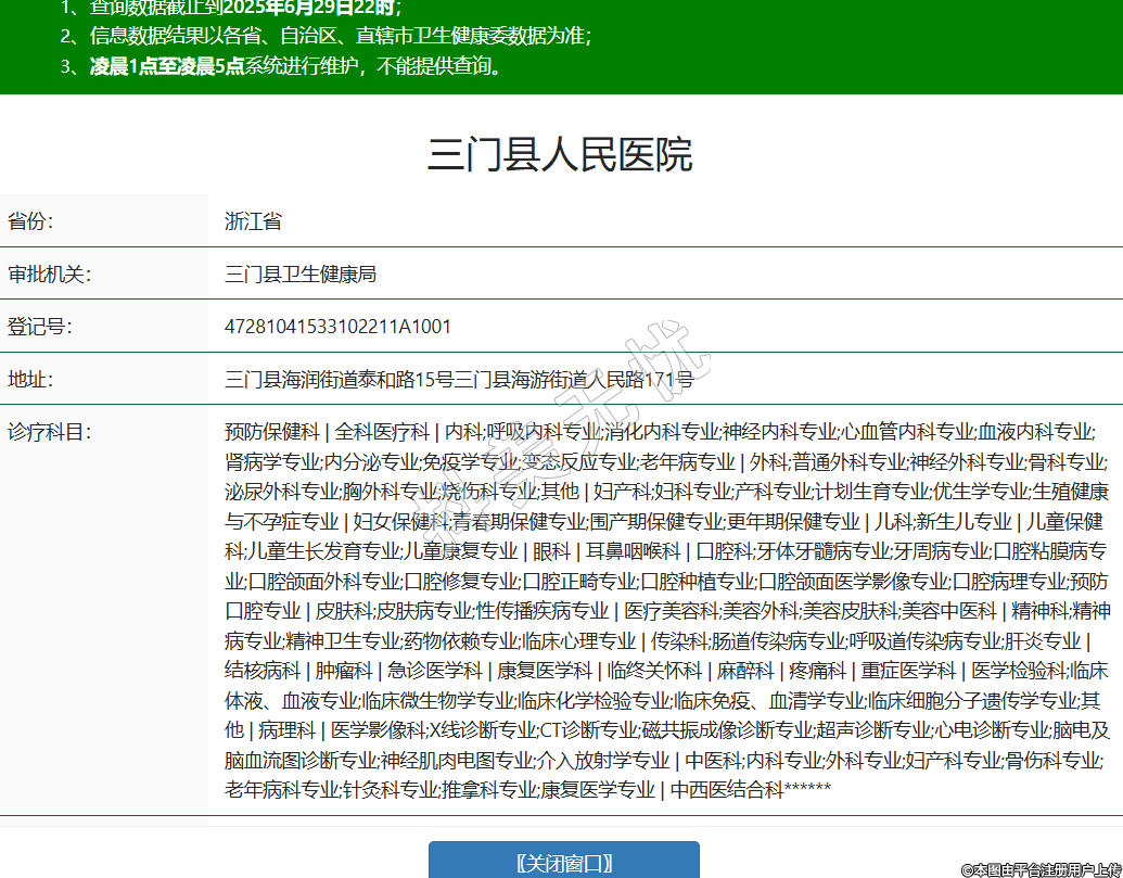 省份:浙江省審批機(jī)關(guān):三門(mén)縣衛(wèi)生健康局登記號(hào):47281041533102211A1001地址:三門(mén)縣海潤(rùn)街道泰和路15號(hào)三門(mén)縣海游街道人民路171號(hào)診療科目:預(yù)防保健科 | 全科醫(yī)療科 | 內(nèi)科;呼吸內(nèi)科專業(yè);消化內(nèi)科專業(yè);神經(jīng)內(nèi)科專業(yè);心血管內(nèi)科專業(yè);血液內(nèi)科專業(yè);腎病學(xué)專業(yè);內(nèi)分泌專業(yè);免疫學(xué)專業(yè);變態(tài)反應(yīng)專業(yè);老年病專業(yè) | 外科;普通外科專業(yè);神經(jīng)外科專業(yè);骨科專業(yè);泌尿外科專業(yè);胸外科專業(yè);燒傷科專業(yè);其他 | 婦產(chǎn)科;婦科專業(yè);產(chǎn)科專業(yè);計(jì)劃生育專業(yè);優(yōu)生學(xué)專業(yè);生殖健康與不孕癥專業(yè) | 婦女保健科;青春期保健專業(yè);圍產(chǎn)期保健專業(yè);更年期保健專業(yè) | 兒科;新生兒專業(yè) | 兒童保健科;兒童生長(zhǎng)發(fā)育專業(yè);兒童康復(fù)專業(yè) | 眼科 | 耳鼻咽喉科 | 口腔科;牙體牙髓病專業(yè);牙周病專業(yè);口腔粘膜病專業(yè);口腔頜面外科專業(yè);口腔修復(fù)專業(yè);口腔正畸專業(yè);口腔種植專業(yè);口腔頜面醫(yī)學(xué)影像專業(yè);口腔病理專業(yè);預(yù)防口腔專業(yè) | 皮膚科;皮膚病專業(yè);性傳播疾病專業(yè) | 醫(yī)療美容科;美容外科;美容皮膚科;美容中醫(yī)科 | 精神科;精神病專業(yè);精神衛(wèi)生專業(yè);藥物依賴專業(yè);臨床心理專業(yè) | 傳染科;腸道傳染病專業(yè);呼吸道傳染病專業(yè);肝炎專業(yè) | 結(jié)核病科 | 腫瘤科 | 急診醫(yī)學(xué)科 | 康復(fù)醫(yī)學(xué)科 | 臨終關(guān)懷科 | 麻醉科 | 疼痛科 | 重癥醫(yī)學(xué)科 | 醫(yī)學(xué)檢驗(yàn)科;臨床體液、血液專業(yè);臨床微生物學(xué)專業(yè);臨床化學(xué)檢驗(yàn)專業(yè);臨床免疫、血清學(xué)專業(yè);臨床細(xì)胞分子遺傳學(xué)專業(yè);其他 | 病理科 | 醫(yī)學(xué)影像科;X線診斷專業(yè);CT診斷專業(yè);磁共振成像診斷專業(yè);超聲診斷專業(yè);心電診斷專業(yè);腦電及腦血流圖診斷專業(yè);神經(jīng)肌肉電圖專業(yè);介入放射學(xué)專業(yè) | 中醫(yī)科;內(nèi)科專業(yè);外科專業(yè);婦產(chǎn)科專業(yè);骨傷科專業(yè);老年病科專業(yè);針灸科專業(yè);推拿科專業(yè);康復(fù)醫(yī)學(xué)專業(yè) | 中西醫(yī)結(jié)合科******級(jí)別:三級(jí)法定代表人:黎宏章主要負(fù)責(zé)人:黎宏章執(zhí)業(yè)許可證有效期:2015/11/10 -至- 2030/11/09 -