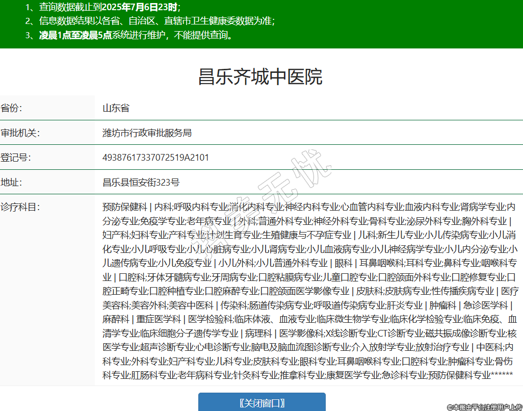 省份:山東省審批機(jī)關(guān):濰坊市行政審批服務(wù)局登記號(hào):49387617337072519A2101地址:昌樂縣恒安街323號(hào)診療科目:預(yù)防保健科 | 內(nèi)科;呼吸內(nèi)科專業(yè);消化內(nèi)科專業(yè);神經(jīng)內(nèi)科專業(yè);心血管內(nèi)科專業(yè);血液內(nèi)科專業(yè);腎病學(xué)專業(yè);內(nèi)分泌專業(yè);免疫學(xué)專業(yè);老年病專業(yè) | 外科;普通外科專業(yè);神經(jīng)外科專業(yè);骨科專業(yè);泌尿外科專業(yè);胸外科專業(yè) | 婦產(chǎn)科;婦科專業(yè);產(chǎn)科專業(yè);計(jì)劃生育專業(yè);生殖健康與不孕癥專業(yè) | 兒科;新生兒專業(yè);小兒傳染病專業(yè);小兒消化專業(yè);小兒呼吸專業(yè);小兒心臟病專業(yè);小兒腎病專業(yè);小兒血液病專業(yè);小兒神經(jīng)病學(xué)專業(yè);小兒內(nèi)分泌專業(yè);小兒遺傳病專業(yè);小兒免疫專業(yè) | 小兒外科;小兒普通外科專業(yè) | 眼科 | 耳鼻咽喉科;耳科專業(yè);鼻科專業(yè);咽喉科專業(yè) | 口腔科;牙體牙髓病專業(yè);牙周病專業(yè);口腔粘膜病專業(yè);兒童口腔專業(yè);口腔頜面外科專業(yè);口腔修復(fù)專業(yè);口腔正畸專業(yè);口腔種植專業(yè);口腔麻醉專業(yè);口腔頜面醫(yī)學(xué)影像專業(yè) | 皮膚科;皮膚病專業(yè);性傳播疾病專業(yè) | 醫(yī)療美容科;美容外科;美容中醫(yī)科 | 傳染科;腸道傳染病專業(yè);呼吸道傳染病專業(yè);肝炎專業(yè) | 腫瘤科 | 急診醫(yī)學(xué)科 | 麻醉科 | 重癥醫(yī)學(xué)科 | 醫(yī)學(xué)檢驗(yàn)科;臨床體液、血液專業(yè);臨床微生物學(xué)專業(yè);臨床化學(xué)檢驗(yàn)專業(yè);臨床免疫、血清學(xué)專業(yè);臨床細(xì)胞分子遺傳學(xué)專業(yè) | 病理科 | 醫(yī)學(xué)影像科;X線診斷專業(yè);CT診斷專業(yè);磁共振成像診斷專業(yè);核醫(yī)學(xué)專業(yè);超聲診斷專業(yè);心電診斷專業(yè);腦電及腦血流圖診斷專業(yè);介入放射學(xué)專業(yè);放射治療專業(yè) | 中醫(yī)科;內(nèi)科專業(yè);外科專業(yè);婦產(chǎn)科專業(yè);兒科專業(yè);皮膚科專業(yè);眼科專業(yè);耳鼻咽喉科專業(yè);口腔科專業(yè);腫瘤科專業(yè);骨傷科專業(yè);肛腸科專業(yè);老年病科專業(yè);針灸科專業(yè);推拿科專業(yè);康復(fù)醫(yī)學(xué)專業(yè);急診科專業(yè);預(yù)防保健科專業(yè)******級(jí)別:二級(jí)法定代表人:孔祥民主要負(fù)責(zé)人:李連印執(zhí)業(yè)許可證有效期:2024/05/09 -至- 2036/03/13 -