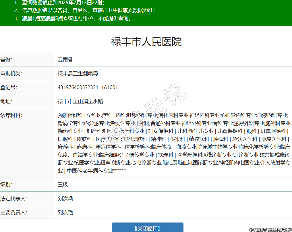 省份:云南省審批機關(guān):祿豐縣衛(wèi)生健康局登記號:43197640053233111A1001地址:祿豐市金山鎮(zhèn)金水路診療科目:預防保健科 | 全科醫(yī)療科 | 內(nèi)科;呼吸內(nèi)科專業(yè);消化內(nèi)科專業(yè);神經(jīng)內(nèi)科專業(yè);心血管內(nèi)科專業(yè);血液內(nèi)科專業(yè);腎病學專業(yè);內(nèi)分泌專業(yè);免疫學專業(yè) | 外科;普通外科專業(yè);神經(jīng)外科專業(yè);骨科專業(yè);泌尿外科專業(yè);胸外科專業(yè);燒傷科專業(yè) | 婦產(chǎn)科;婦科專業(yè);產(chǎn)科專業(yè) | 婦女保健科 | 兒科;新生兒專業(yè) | 兒童保健科 | 眼科 | 耳鼻咽喉科 | 口腔科 | 皮膚科 | 醫(yī)療美容科;美容皮膚科 | 精神科 | 傳染科 | 結(jié)核病科 | 腫瘤科 | 急診醫(yī)學科 | 康復醫(yī)學科 | 麻醉科 | 疼痛科 | 重癥醫(yī)學科 | 醫(yī)學檢驗科;臨床體液、血液專業(yè);臨床微生物學專業(yè);臨床化學檢驗專業(yè);臨床免疫、血清學專業(yè);臨床細胞分子遺傳學專業(yè) | 病理科 | 醫(yī)學影像科;X線診斷專業(yè);CT診斷專業(yè);磁共振成像診斷專業(yè);核醫(yī)學專業(yè);超聲診斷專業(yè);心電診斷專業(yè);腦電及腦血流圖診斷專業(yè);神經(jīng)肌肉電圖專業(yè);介入放射學專業(yè) | 中醫(yī)科;老年病科專業(yè)******級別:三級法定代表人:劉汝艷主要負責人:劉汝艷執(zhí)業(yè)許可證有效期:2023/09/15 -至- 2037/12/30 -