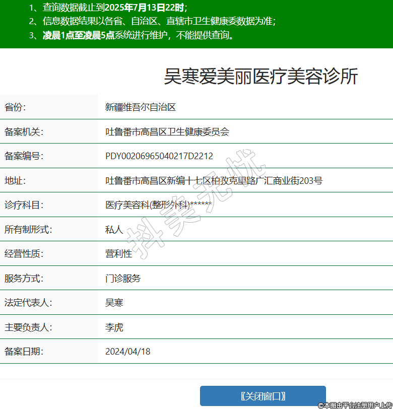 省份:新疆維吾爾自治區(qū)備案機(jī)關(guān):吐魯番市高昌區(qū)衛(wèi)生健康委員會備案編號:PDY00206965040217D2212地址:吐魯番市高昌區(qū)新編十七區(qū)柏孜克里路廣匯商業(yè)街203號診療科目:醫(yī)療美容科(整形外科)******所有制形式:私人經(jīng)營性質(zhì):營利性服務(wù)方式:門診服務(wù)法定代表人:吳寒主要負(fù)責(zé)人:李虎備案日期:2024/04/18 -