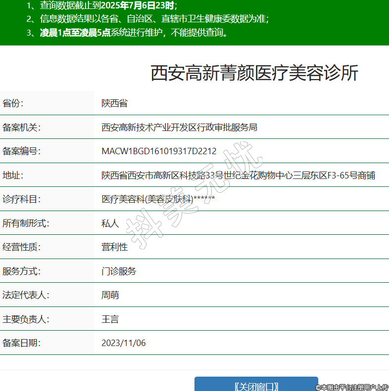 省份:陜西省備案機關(guān):西安高新技術(shù)產(chǎn)業(yè)開發(fā)區(qū)行政審批服務局備案編號:MACW1BGD161019317D2212地址:陜西省西安市高新區(qū)科技路33號世紀金花購物中心三層東區(qū)F3-65號商鋪診療科目:醫(yī)療美容科(美容皮膚科)******所有制形式:私人經(jīng)營性質(zhì):營利性服務方式:門診服務法定代表人:周萌主要負責人:王言備案日期:2023/11/06 -