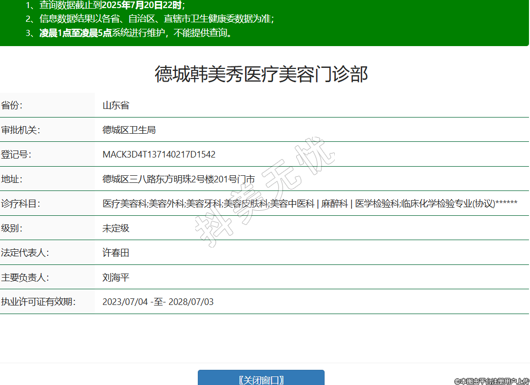 省份:山東省審批機(jī)關(guān):德城區(qū)衛(wèi)生局登記號:MACK3D4T137140217D1542地址:德城區(qū)三八路東方明珠2號樓201號門市診療科目:醫(yī)療美容科;美容外科;美容牙科;美容皮膚科;美容中醫(yī)科 | 麻醉科 | 醫(yī)學(xué)檢驗(yàn)科;臨床化學(xué)檢驗(yàn)專業(yè)(協(xié)議)******級別:未定級法定代表人:許春田主要負(fù)責(zé)人:劉海平執(zhí)業(yè)許可證有效期:2023/07/04 -至- 2028/07/03 -