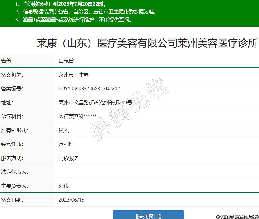 萊康(山東)醫(yī)療美容有限公司萊州美容醫(yī)療診所
