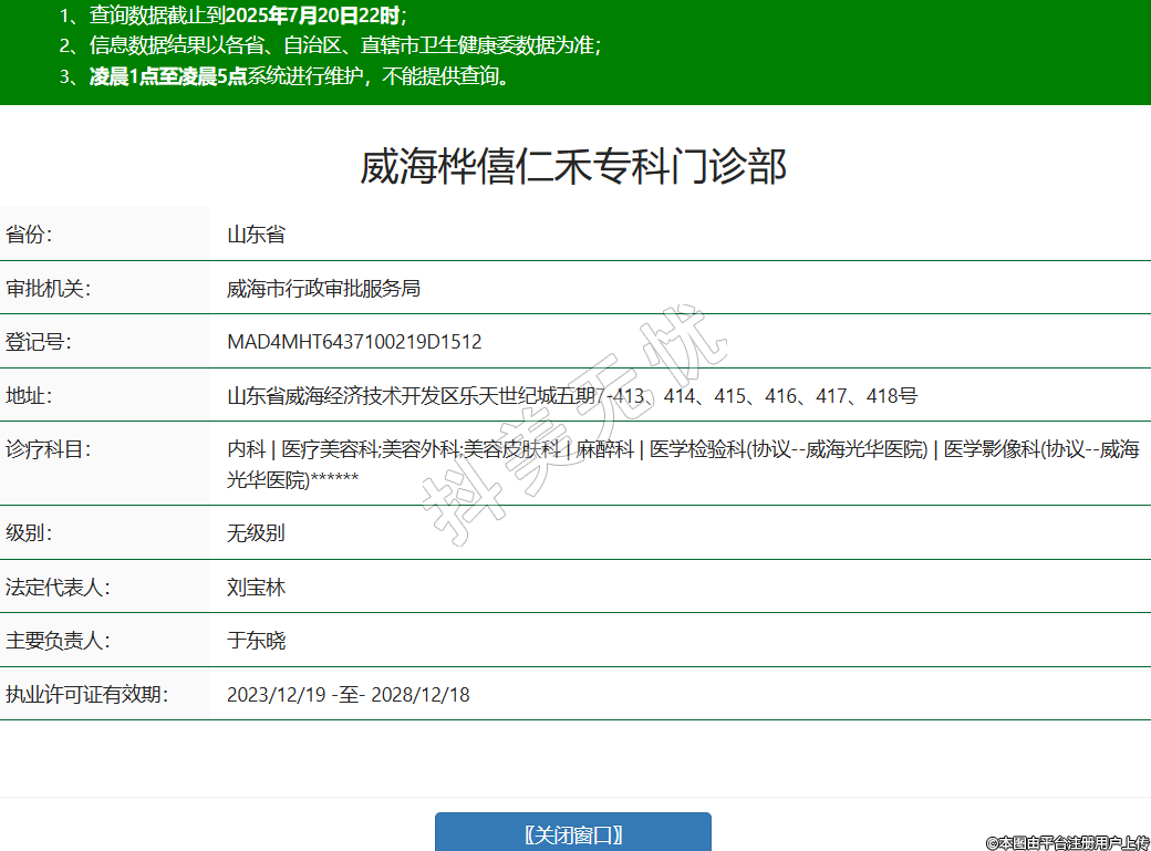 威海樺僖仁禾??崎T診部醫(yī)療美容