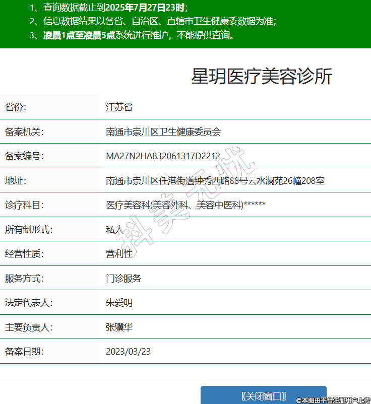 省份:江蘇省備案機關(guān):南通市崇川區(qū)衛(wèi)生健康委員會備案編號:MA27N2HA832061317D2212地址:南通市崇川區(qū)任港街道鐘秀西路88號云水瀾苑26幢208室診療科目:醫(yī)療美容科(美容外科、美容中醫(yī)科)******所有制形式:私人經(jīng)營性質(zhì):營利性服務(wù)方式:門診服務(wù)法定代表人:朱愛明主要負(fù)責(zé)人:張驥華備案日期:2023/03/23 -