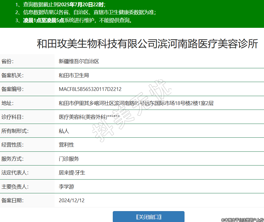 省份:新疆維吾爾自治區(qū)備案機(jī)關(guān):和田市衛(wèi)生局備案編號(hào):MACF8L5B565320117D2212地址:和田市伊里其鄉(xiāng)喀河社區(qū)濱河南路85號(hào)遠(yuǎn)東國(guó)際市場(chǎng)18號(hào)樓2樓1室2層診療科目:醫(yī)療美容科(美容外科)******所有制形式:私人經(jīng)營(yíng)性質(zhì):營(yíng)利性服務(wù)方式:門(mén)診服務(wù)法定代表人:居來(lái)提·牙生主要負(fù)責(zé)人:李學(xué)游備案日期:2024/12/12 -