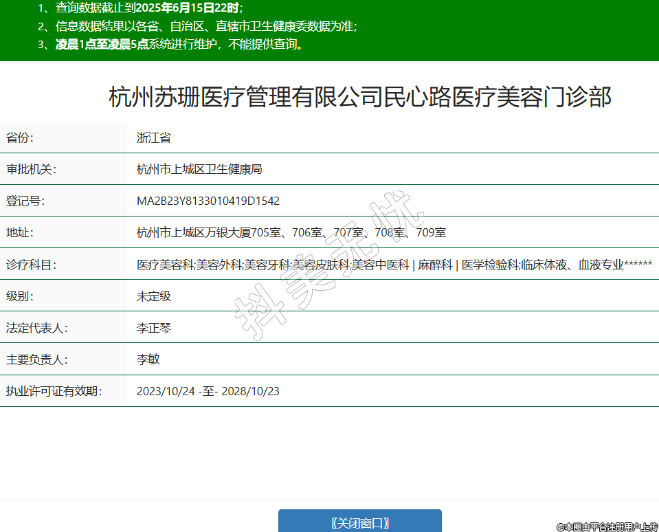 杭州蘇珊醫(yī)療管理有限公司民心路醫(yī)療美容門(mén)診部
