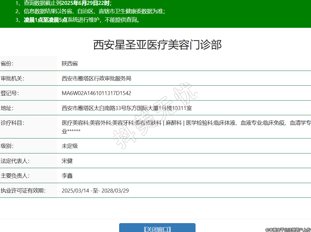 省份:陜西省審批機關(guān):西安市雁塔區(qū)行政審批服務(wù)局登記號:MA6W02A1461011317D1542地址:西安市雁塔區(qū)太白南路33號東方國際大廈1號樓10311室診療科目:醫(yī)療美容科;美容外科;美容牙科;美容皮膚科 | 麻醉科 | 醫(yī)學檢驗科;臨床體液、血液專業(yè);臨床免疫、血清學專業(yè)******級別:未定級法定代表人:宋健主要負責人:李鑫執(zhí)業(yè)許可證有效期:2025/03/14 -至- 2028/03/29 -