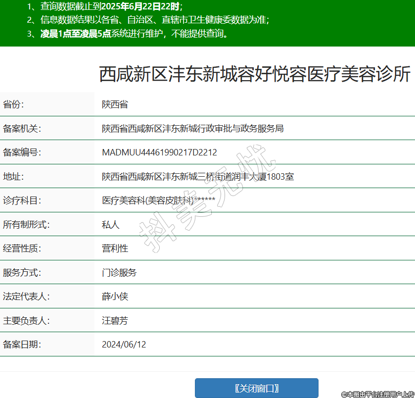 省份:陜西省備案機(jī)關(guān):陜西省西咸新區(qū)灃東新城行政審批與政務(wù)服務(wù)局備案編號(hào):MADMUU44461990217D2212地址:陜西省西咸新區(qū)灃東新城三橋街道潤(rùn)豐大廈1803室診療科目:醫(yī)療美容科(美容皮膚科)******所有制形式:私人經(jīng)營(yíng)性質(zhì):營(yíng)利性服務(wù)方式:門診服務(wù)法定代表人:薛小俠主要負(fù)責(zé)人:汪碧芳備案日期:2024/06/12 -