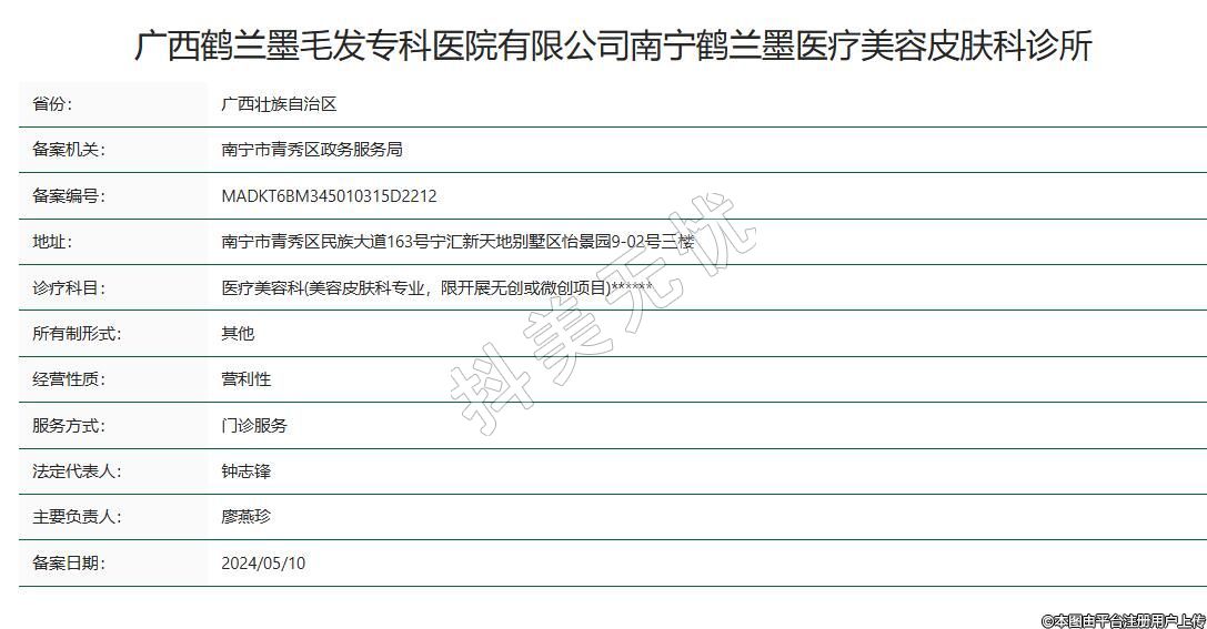 廣西鶴蘭墨毛發(fā)??漆t(yī)院有限公司南寧鶴蘭墨醫(yī)療美容皮膚科診所