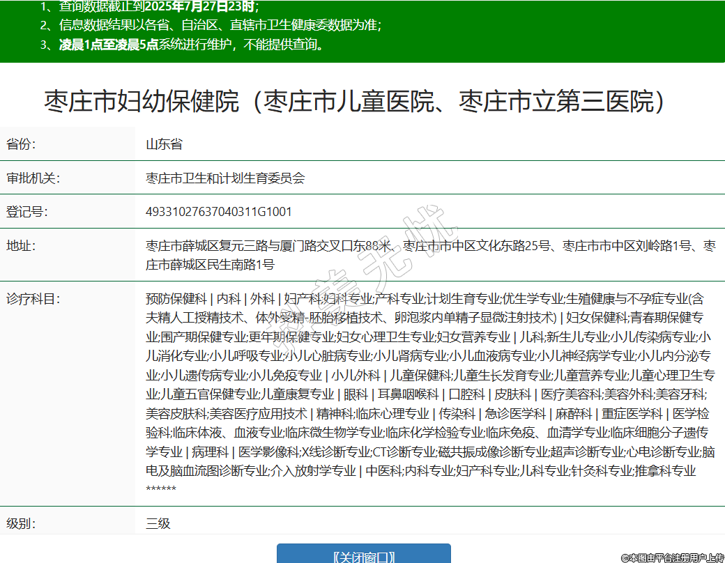 省份:山東省審批機(jī)關(guān):棗莊市衛(wèi)生和計(jì)劃生育委員會(huì)登記號(hào):49331027637040311G1001地址:棗莊市薛城區(qū)復(fù)元三路與廈門路交叉口東88米、棗莊市市中區(qū)文化東路25號(hào)、棗莊市市中區(qū)劉嶺路1號(hào)、棗莊市薛城區(qū)民生南路1號(hào)診療科目:預(yù)防保健科 | 內(nèi)科 | 外科 | 婦產(chǎn)科;婦科專業(yè);產(chǎn)科專業(yè);計(jì)劃生育專業(yè);優(yōu)生學(xué)專業(yè);生殖健康與不孕癥專業(yè)(含夫精人工授精技術(shù)、體外受精-胚胎移植技術(shù)、卵泡漿內(nèi)單精子顯微注射技術(shù)) | 婦女保健科;青春期保健專業(yè);圍產(chǎn)期保健專業(yè);更年期保健專業(yè);婦女心理衛(wèi)生專業(yè);婦女營(yíng)養(yǎng)專業(yè) | 兒科;新生兒專業(yè);小兒傳染病專業(yè);小兒消化專業(yè);小兒呼吸專業(yè);小兒心臟病專業(yè);小兒腎病專業(yè);小兒血液病專業(yè);小兒神經(jīng)病學(xué)專業(yè);小兒內(nèi)分泌專業(yè);小兒遺傳病專業(yè);小兒免疫專業(yè) | 小兒外科 | 兒童保健科;兒童生長(zhǎng)發(fā)育專業(yè);兒童營(yíng)養(yǎng)專業(yè);兒童心理衛(wèi)生專業(yè);兒童五官保健專業(yè);兒童康復(fù)專業(yè) | 眼科 | 耳鼻咽喉科 | 口腔科 | 皮膚科 | 醫(yī)療美容科;美容外科;美容牙科;美容皮膚科;美容醫(yī)療應(yīng)用技術(shù) | 精神科;臨床心理專業(yè) | 傳染科 | 急診醫(yī)學(xué)科 | 麻醉科 | 重癥醫(yī)學(xué)科 | 醫(yī)學(xué)檢驗(yàn)科;臨床體液、血液專業(yè);臨床微生物學(xué)專業(yè);臨床化學(xué)檢驗(yàn)專業(yè);臨床免疫、血清學(xué)專業(yè);臨床細(xì)胞分子遺傳學(xué)專業(yè) | 病理科 | 醫(yī)學(xué)影像科;X線診斷專業(yè);CT診斷專業(yè);磁共振成像診斷專業(yè);超聲診斷專業(yè);心電診斷專業(yè);腦電及腦血流圖診斷專業(yè);介入放射學(xué)專業(yè) | 中醫(yī)科;內(nèi)科專業(yè);婦產(chǎn)科專業(yè);兒科專業(yè);針灸科專業(yè);推拿科專業(yè)******級(jí)別:三級(jí)法定代表人:俞淑靜主要負(fù)責(zé)人:俞淑靜執(zhí)業(yè)許可證有效期:2025/07/15 -至- 2026/09/09 -