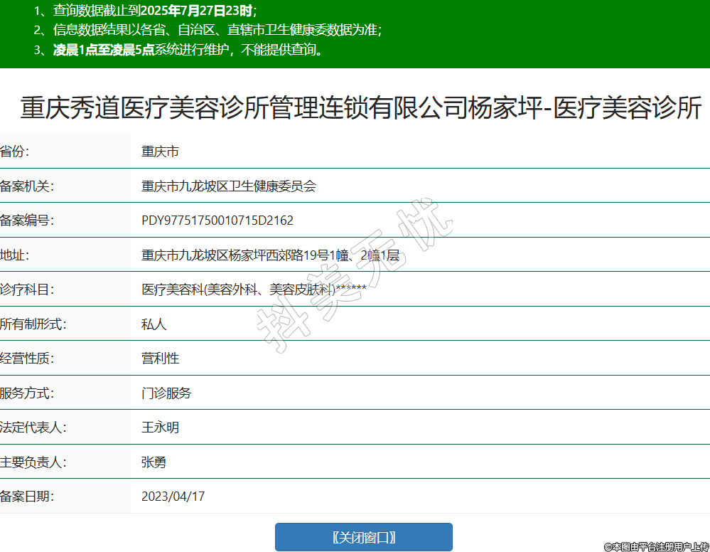 重慶秀道醫(yī)療美容診所管理連鎖有限公司楊家坪-醫(yī)療美容診所