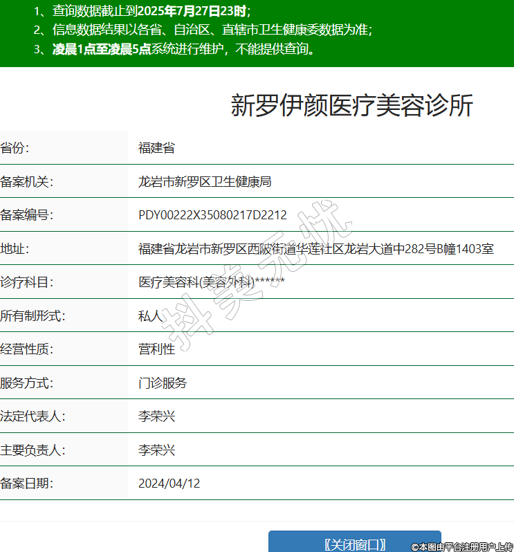 省份:福建省備案機關:龍巖市新羅區(qū)衛(wèi)生健康局備案編號:PDY00222X35080217D2212地址:福建省龍巖市新羅區(qū)西陂街道華蓮社區(qū)龍巖大道中282號B幢1403室診療科目:醫(yī)療美容科(美容外科)******所有制形式:私人經(jīng)營性質:營利性服務方式:門診服務法定代表人:李榮興主要負責人:李榮興備案日期:2024/04/12 -
