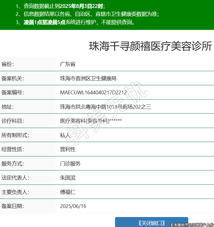 珠海千尋顏禧醫(yī)療美容診所,診療科目:醫(yī)療美容科(美容外科)******