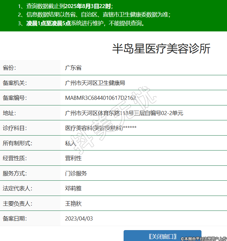 省份:廣東省備案機(jī)關(guān):廣州市天河區(qū)衛(wèi)生健康局備案編號(hào):MABMR3C6844010617D2162地址:廣州市天河區(qū)體育東路118號(hào)三層自編號(hào)02-2單元診療科目:醫(yī)療美容科(美容皮膚科)******所有制形式:私人經(jīng)營(yíng)性質(zhì):營(yíng)利性服務(wù)方式:門(mén)診服務(wù)法定代表人:鄧?yán)蜓?/div>主要負(fù)責(zé)人:王艷秋備案日期:2023/04/03