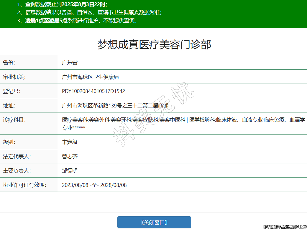 省份:廣東省審批機(jī)關(guān):廣州市海珠區(qū)衛(wèi)生健康局登記號:PDY10020844010517D1542地址:廣州市海珠區(qū)革新路139號之三十二第二層商鋪診療科目:醫(yī)療美容科;美容外科;美容牙科;美容皮膚科;美容中醫(yī)科 | 醫(yī)學(xué)檢驗(yàn)科;臨床體液、血液專業(yè);臨床免疫、血清學(xué)專業(yè)******級別:未定級法定代表人:曾志芬主要負(fù)責(zé)人:鄒德明執(zhí)業(yè)許可證有效期:2023/08/08 -至- 2028/08/08 -