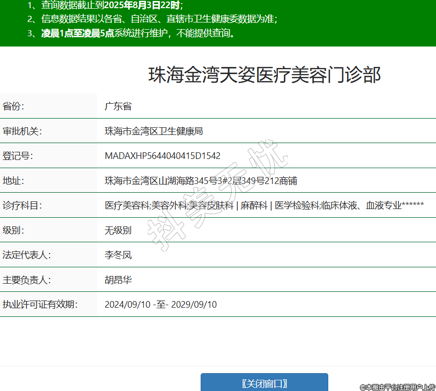 省份:廣東省審批機(jī)關(guān):珠海市金灣區(qū)衛(wèi)生健康局登記號:MADAXHP5644040415D1542地址:珠海市金灣區(qū)山湖海路345號3#2層349號212商鋪診療科目:醫(yī)療美容科;美容外科;美容皮膚科 | 麻醉科 | 醫(yī)學(xué)檢驗科;臨床體液、血液專業(yè)******級別:無級別法定代表人:李冬鳳主要負(fù)責(zé)人:胡昂華執(zhí)業(yè)許可證有效期:2024/09/10 -至- 2029/09/10 -