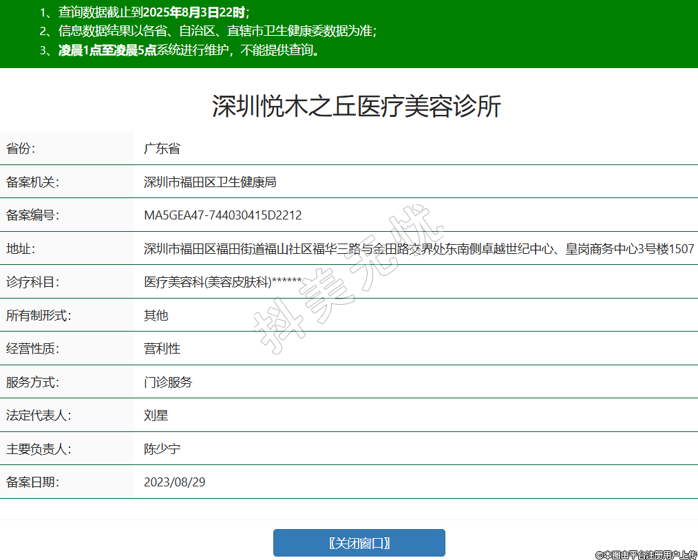 省份:廣東省備案機關(guān):深圳市福田區(qū)衛(wèi)生健康局備案編號:MA5GEA47-744030415D2212地址:深圳市福田區(qū)福田街道福山社區(qū)福華三路與金田路交界處東南側(cè)卓越世紀中心、皇崗商務(wù)中心3號樓1507診療科目:醫(yī)療美容科(美容皮膚科)******所有制形式:其他經(jīng)營性質(zhì):營利性服務(wù)方式:門診服務(wù)法定代表人:劉星主要負責人:陳少寧備案日期:2023/08/29 -