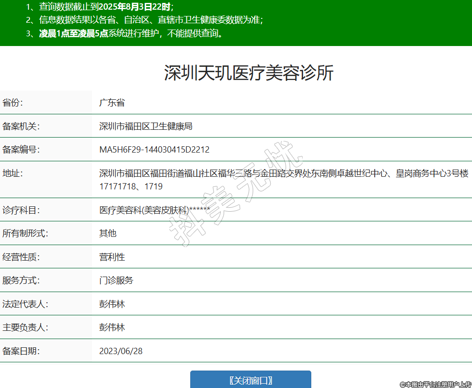 深圳天璣醫(yī)療美容診所,診療科目:醫(yī)療美容科(美容皮膚科)******