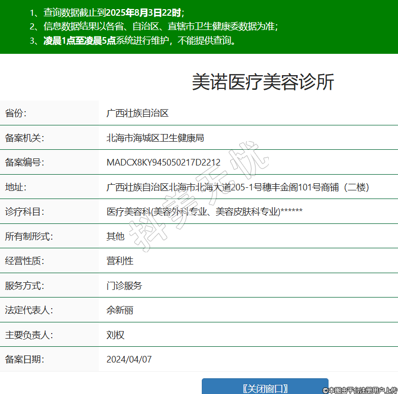 北海美諾醫(yī)療美容診所成立于2024年,坐落于北海市海城區(qū)北海大道205-1號穗豐金閣101號商鋪。機構(gòu)資質(zhì)合規(guī),由專業(yè)醫(yī)美團隊主理,配備標準化診療設(shè)備,開展美容外科、皮膚管理、微創(chuàng)整形等項目,涵蓋抗衰煥膚、五官塑美、美體塑形及膚質(zhì)優(yōu)化等需求。依托個性化美學設(shè)計,結(jié)合科學方案與規(guī)范操作,嚴格遵循醫(yī)療安全標準,全程保障服務(wù)質(zhì)量。