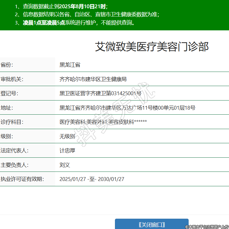 省份:黑龍江省審批機關(guān):齊齊哈爾市建華區(qū)衛(wèi)生健康局登記號:黑衛(wèi)醫(yī)證營字齊建衛(wèi)第031425001號地址:黑龍江省齊齊哈爾市建華區(qū)萬達廣場11號樓00單元01層18號診療科目:醫(yī)療美容科;美容外科;美容皮膚科******級別:無級別法定代表人:計忠厚主要負責人:劉義執(zhí)業(yè)許可證有效期:2025/01/27 -至- 2030/01/27 -