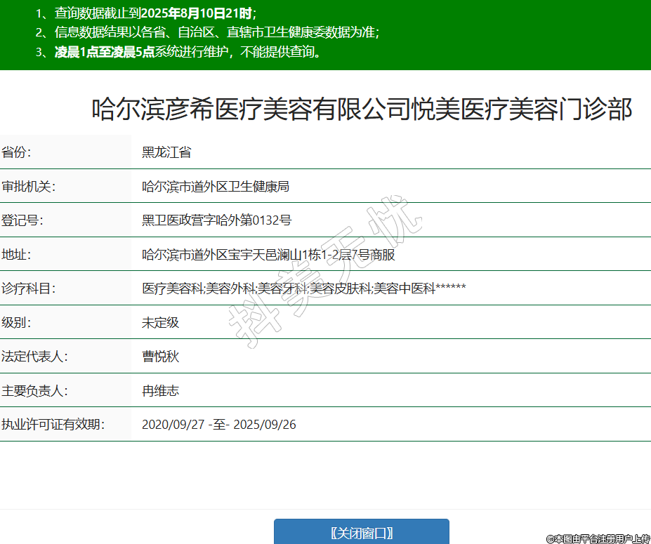 哈爾濱彥希醫(yī)療美容有限公司悅美醫(yī)療美容門診部