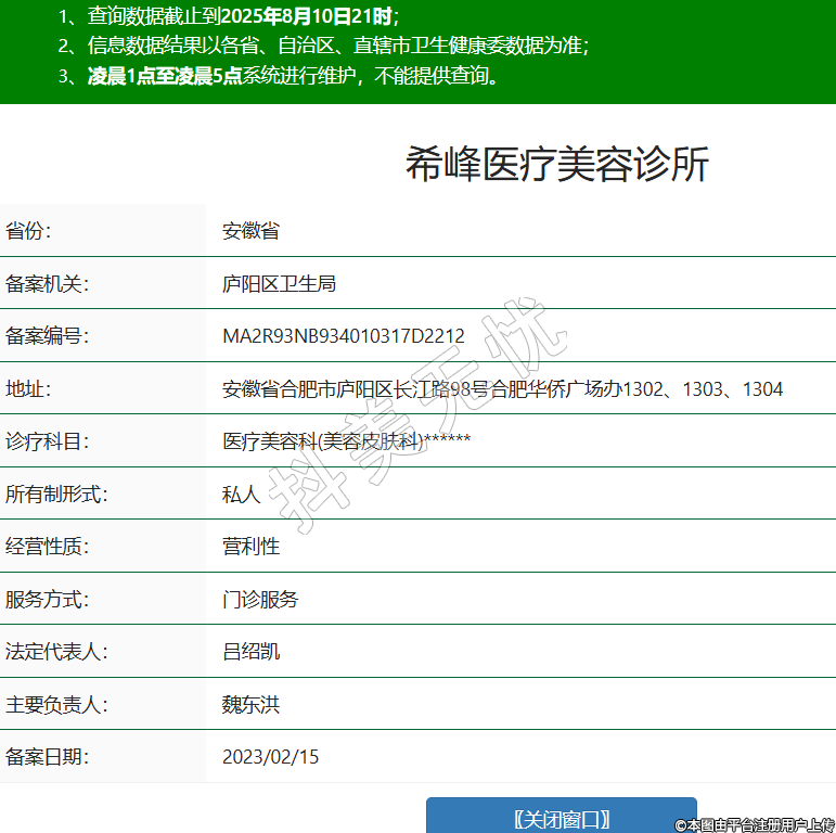 省份:安徽省備案機(jī)關(guān):廬陽區(qū)衛(wèi)生局備案編號(hào):MA2R93NB934010317D2212地址:安徽省合肥市廬陽區(qū)長(zhǎng)江路98號(hào)合肥華僑廣場(chǎng)辦1302、1303、1304診療科目:醫(yī)療美容科(美容皮膚科)******所有制形式:私人經(jīng)營(yíng)性質(zhì):營(yíng)利性服務(wù)方式:門診服務(wù)法定代表人:呂紹凱主要負(fù)責(zé)人:魏東洪備案日期:2023/02/15 -