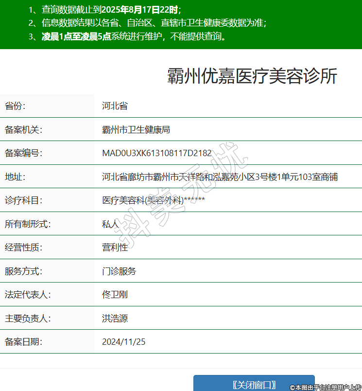 省份:河北省備案機(jī)關(guān):霸州市衛(wèi)生健康局備案編號:MAD0U3XK613108117D2182地址:河北省廊坊市霸州市天祥路和泓嘉苑小區(qū)3號樓1單元103室商鋪診療科目:醫(yī)療美容科(美容外科)******所有制形式:私人經(jīng)營性質(zhì):營利性服務(wù)方式:門診服務(wù)法定代表人:佟衛(wèi)剛主要負(fù)責(zé)人:洪浩源備案日期:2024/11/25 -