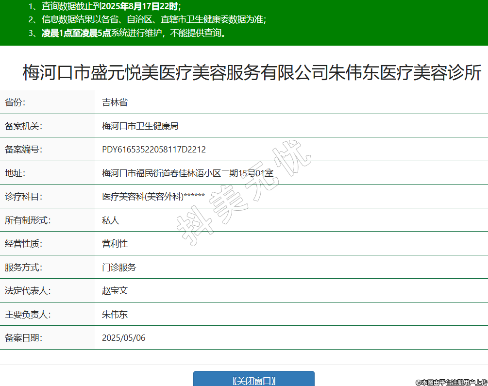 梅河口市盛元悅美醫(yī)療美容服務有限公司朱偉東醫(yī)療美容診所