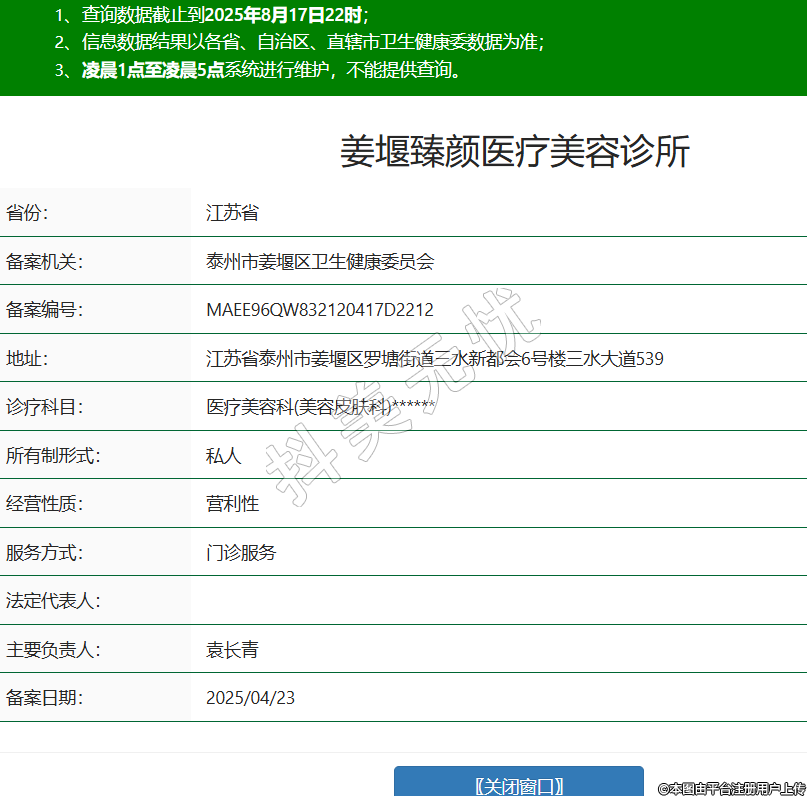 姜堰臻顏醫(yī)療美容診所,診療科目:醫(yī)療美容科(美容皮膚科)******