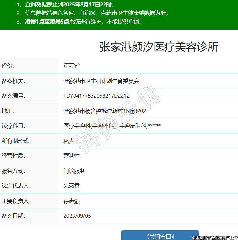 省份:江蘇省備案機(jī)關(guān):張家港市衛(wèi)生和計(jì)劃生育委員會(huì)備案編號(hào):PDY84177532058217D2212地址:張家港市楊舍鎮(zhèn)城建新村16幢B202診療科目:醫(yī)療美容科(美容外科,美容皮膚科)******所有制形式:私人經(jīng)營(yíng)性質(zhì):營(yíng)利性服務(wù)方式:門診服務(wù)法定代表人:朱菊香主要負(fù)責(zé)人:徐志強(qiáng)備案日期:2023/09/05 -