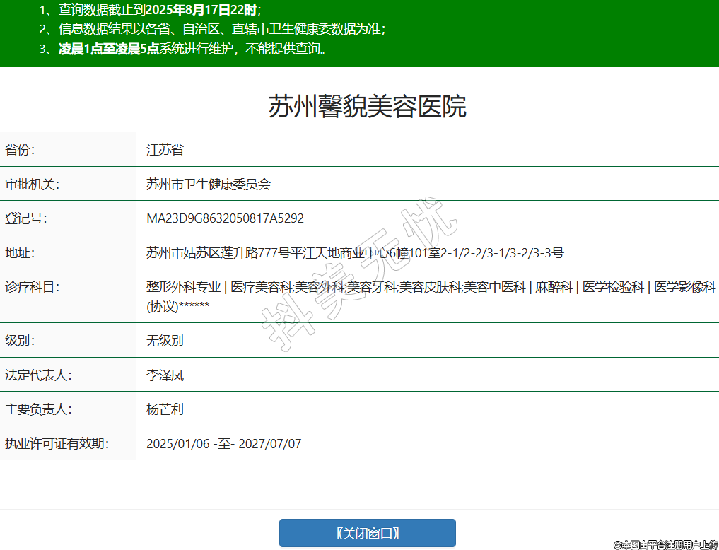 蘇州馨貌美容醫(yī)院,診療科目:整形外科專業(yè) | 醫(yī)療美容科;美容外科;美容牙科;美容皮膚科;美容中醫(yī)科 | 麻醉科 | 醫(yī)學檢驗科 | 醫(yī)學影像科(協(xié)議)******