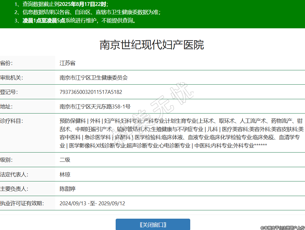 省份:江蘇省審批機關(guān):南京市江寧區(qū)衛(wèi)生健康委員會登記號:79373650032011517A5182地址:南京市江寧區(qū)天元東路358-1號診療科目:預防保健科 | 外科 | 婦產(chǎn)科;婦科專業(yè);產(chǎn)科專業(yè);計劃生育專業(yè)(上環(huán)術(shù)、取環(huán)術(shù)、人工流產(chǎn)術(shù)、藥物流產(chǎn)、鉗刮術(shù)、中期妊娠引產(chǎn)術(shù)、輸卵管結(jié)扎術(shù));生殖健康與不孕癥專業(yè) | 兒科 | 醫(yī)療美容科;美容外科;美容皮膚科;美容中醫(yī)科 | 急診醫(yī)學科 | 麻醉科 | 醫(yī)學檢驗科;臨床體液、血液專業(yè);臨床化學檢驗專業(yè);臨床免疫、血清學專業(yè) | 醫(yī)學影像科;X線診斷專業(yè);超聲診斷專業(yè);心電診斷專業(yè) | 中醫(yī)科;內(nèi)科專業(yè);外科專業(yè)******級別:二級法定代表人:林瓊主要負責人:陳甜婷執(zhí)業(yè)許可證有效期:2024/09/13 -至- 2029/09/12 -