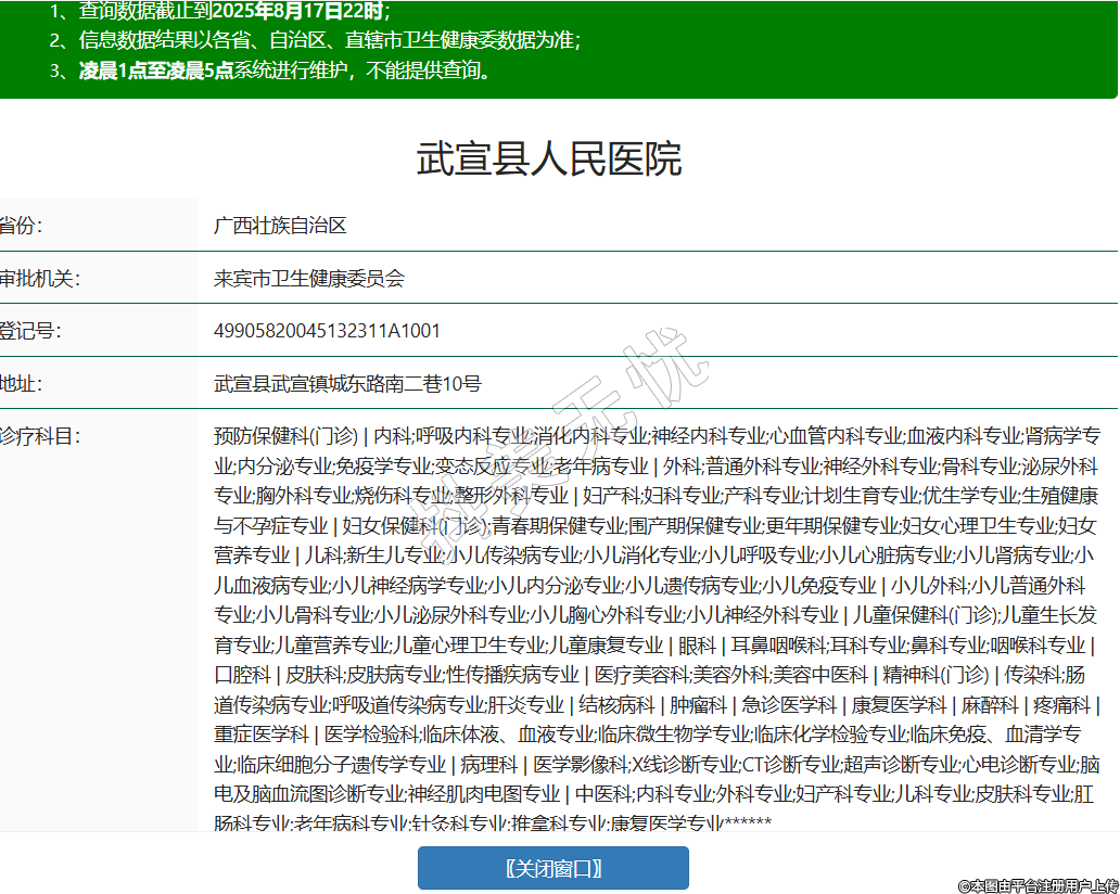 省份:廣西壯族自治區(qū)審批機(jī)關(guān):來賓市衛(wèi)生健康委員會(huì)登記號:49905820045132311A1001地址:武宣縣武宣鎮(zhèn)城東路南二巷10號診療科目:預(yù)防保健科(門診) | 內(nèi)科;呼吸內(nèi)科專業(yè);消化內(nèi)科專業(yè);神經(jīng)內(nèi)科專業(yè);心血管內(nèi)科專業(yè);血液內(nèi)科專業(yè);腎病學(xué)專業(yè);內(nèi)分泌專業(yè);免疫學(xué)專業(yè);變態(tài)反應(yīng)專業(yè);老年病專業(yè) | 外科;普通外科專業(yè);神經(jīng)外科專業(yè);骨科專業(yè);泌尿外科專業(yè);胸外科專業(yè);燒傷科專業(yè);整形外科專業(yè) | 婦產(chǎn)科;婦科專業(yè);產(chǎn)科專業(yè);計(jì)劃生育專業(yè);優(yōu)生學(xué)專業(yè);生殖健康與不孕癥專業(yè) | 婦女保健科(門診);青春期保健專業(yè);圍產(chǎn)期保健專業(yè);更年期保健專業(yè);婦女心理衛(wèi)生專業(yè);婦女營養(yǎng)專業(yè) | 兒科;新生兒專業(yè);小兒傳染病專業(yè);小兒消化專業(yè);小兒呼吸專業(yè);小兒心臟病專業(yè);小兒腎病專業(yè);小兒血液病專業(yè);小兒神經(jīng)病學(xué)專業(yè);小兒內(nèi)分泌專業(yè);小兒遺傳病專業(yè);小兒免疫專業(yè) | 小兒外科;小兒普通外科專業(yè);小兒骨科專業(yè);小兒泌尿外科專業(yè);小兒胸心外科專業(yè);小兒神經(jīng)外科專業(yè) | 兒童保健科(門診);兒童生長發(fā)育專業(yè);兒童營養(yǎng)專業(yè);兒童心理衛(wèi)生專業(yè);兒童康復(fù)專業(yè) | 眼科 | 耳鼻咽喉科;耳科專業(yè);鼻科專業(yè);咽喉科專業(yè) | 口腔科 | 皮膚科;皮膚病專業(yè);性傳播疾病專業(yè) | 醫(yī)療美容科;美容外科;美容中醫(yī)科 | 精神科(門診) | 傳染科;腸道傳染病專業(yè);呼吸道傳染病專業(yè);肝炎專業(yè) | 結(jié)核病科 | 腫瘤科 | 急診醫(yī)學(xué)科 | 康復(fù)醫(yī)學(xué)科 | 麻醉科 | 疼痛科 | 重癥醫(yī)學(xué)科 | 醫(yī)學(xué)檢驗(yàn)科;臨床體液、血液專業(yè);臨床微生物學(xué)專業(yè);臨床化學(xué)檢驗(yàn)專業(yè);臨床免疫、血清學(xué)專業(yè);臨床細(xì)胞分子遺傳學(xué)專業(yè) | 病理科 | 醫(yī)學(xué)影像科;X線診斷專業(yè);CT診斷專業(yè);超聲診斷專業(yè);心電診斷專業(yè);腦電及腦血流圖診斷專業(yè);神經(jīng)肌肉電圖專業(yè) | 中醫(yī)科;內(nèi)科專業(yè);外科專業(yè);婦產(chǎn)科專業(yè);兒科專業(yè);皮膚科專業(yè);肛腸科專業(yè);老年病科專業(yè);針灸科專業(yè);推拿科專業(yè);康復(fù)醫(yī)學(xué)專業(yè)******級別:二級法定代表人:庾佳南主要負(fù)責(zé)人:庾佳南執(zhí)業(yè)許可證有效期:2019/03/02 -至- 2034/03/01 -