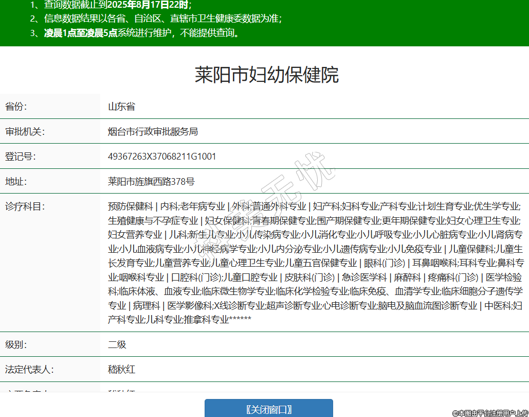省份:山東省審批機關(guān):煙臺市行政審批服務(wù)局登記號:49367263X37068211G1001地址:萊陽市旌旗西路378號診療科目:預(yù)防保健科 | 內(nèi)科;老年病專業(yè) | 外科;普通外科專業(yè) | 婦產(chǎn)科;婦科專業(yè);產(chǎn)科專業(yè);計劃生育專業(yè);優(yōu)生學(xué)專業(yè);生殖健康與不孕癥專業(yè) | 婦女保健科;青春期保健專業(yè);圍產(chǎn)期保健專業(yè);更年期保健專業(yè);婦女心理衛(wèi)生專業(yè);婦女營養(yǎng)專業(yè) | 兒科;新生兒專業(yè);小兒傳染病專業(yè);小兒消化專業(yè);小兒呼吸專業(yè);小兒心臟病專業(yè);小兒腎病專業(yè);小兒血液病專業(yè);小兒神經(jīng)病學(xué)專業(yè);小兒內(nèi)分泌專業(yè);小兒遺傳病專業(yè);小兒免疫專業(yè) | 兒童保健科;兒童生長發(fā)育專業(yè);兒童營養(yǎng)專業(yè);兒童心理衛(wèi)生專業(yè);兒童五官保健專業(yè) | 眼科(門診) | 耳鼻咽喉科;耳科專業(yè);鼻科專業(yè);咽喉科專業(yè) | 口腔科(門診);兒童口腔專業(yè) | 皮膚科(門診) | 急診醫(yī)學(xué)科 | 麻醉科 | 疼痛科(門診) | 醫(yī)學(xué)檢驗科;臨床體液、血液專業(yè);臨床微生物學(xué)專業(yè);臨床化學(xué)檢驗專業(yè);臨床免疫、血清學(xué)專業(yè);臨床細(xì)胞分子遺傳學(xué)專業(yè) | 病理科 | 醫(yī)學(xué)影像科;X線診斷專業(yè);超聲診斷專業(yè);心電診斷專業(yè);腦電及腦血流圖診斷專業(yè) | 中醫(yī)科;婦產(chǎn)科專業(yè);兒科專業(yè);推拿科專業(yè)******級別:二級法定代表人:嵇秋紅主要負(fù)責(zé)人:嵇秋紅執(zhí)業(yè)許可證有效期:2025/03/13 -至- 2034/12/31 -