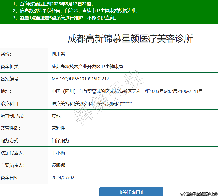 成都高新錦慕星顏醫(yī)療美容診所,診療科目:醫(yī)療美容科(美容外科,美容皮膚科)******