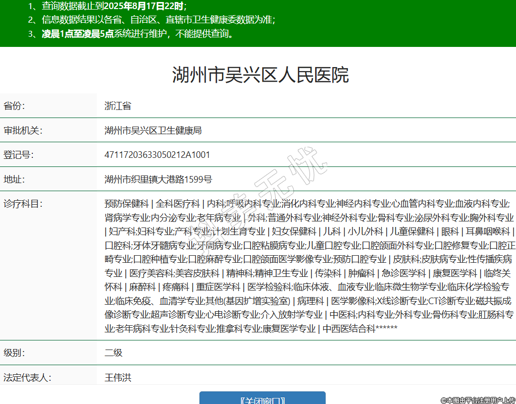 省份:浙江省審批機關(guān):湖州市吳興區(qū)衛(wèi)生健康局登記號:47117203633050212A1001地址:湖州市織里鎮(zhèn)大港路1599號診療科目:預(yù)防保健科 | 全科醫(yī)療科 | 內(nèi)科;呼吸內(nèi)科專業(yè);消化內(nèi)科專業(yè);神經(jīng)內(nèi)科專業(yè);心血管內(nèi)科專業(yè);血液內(nèi)科專業(yè);腎病學(xué)專業(yè);內(nèi)分泌專業(yè);老年病專業(yè) | 外科;普通外科專業(yè);神經(jīng)外科專業(yè);骨科專業(yè);泌尿外科專業(yè);胸外科專業(yè) | 婦產(chǎn)科;婦科專業(yè);產(chǎn)科專業(yè);計劃生育專業(yè) | 婦女保健科 | 兒科 | 小兒外科 | 兒童保健科 | 眼科 | 耳鼻咽喉科 | 口腔科;牙體牙髓病專業(yè);牙周病專業(yè);口腔粘膜病專業(yè);兒童口腔專業(yè);口腔頜面外科專業(yè);口腔修復(fù)專業(yè);口腔正畸專業(yè);口腔種植專業(yè);口腔麻醉專業(yè);口腔頜面醫(yī)學(xué)影像專業(yè);預(yù)防口腔專業(yè) | 皮膚科;皮膚病專業(yè);性傳播疾病專業(yè) | 醫(yī)療美容科;美容皮膚科 | 精神科;精神衛(wèi)生專業(yè) | 傳染科 | 腫瘤科 | 急診醫(yī)學(xué)科 | 康復(fù)醫(yī)學(xué)科 | 臨終關(guān)懷科 | 麻醉科 | 疼痛科 | 重癥醫(yī)學(xué)科 | 醫(yī)學(xué)檢驗科;臨床體液、血液專業(yè);臨床微生物學(xué)專業(yè);臨床化學(xué)檢驗專業(yè);臨床免疫、血清學(xué)專業(yè);其他(基因擴增實驗室) | 病理科 | 醫(yī)學(xué)影像科;X線診斷專業(yè);CT診斷專業(yè);磁共振成像診斷專業(yè);超聲診斷專業(yè);心電診斷專業(yè);介入放射學(xué)專業(yè) | 中醫(yī)科;內(nèi)科專業(yè);外科專業(yè);骨傷科專業(yè);肛腸科專業(yè);老年病科專業(yè);針灸科專業(yè);推拿科專業(yè);康復(fù)醫(yī)學(xué)專業(yè) | 中西醫(yī)結(jié)合科******級別:二級法定代表人:王偉洪主要負(fù)責(zé)人:武中慶執(zhí)業(yè)許可證有效期:2021/07/13 -至- 2026/07/12 -