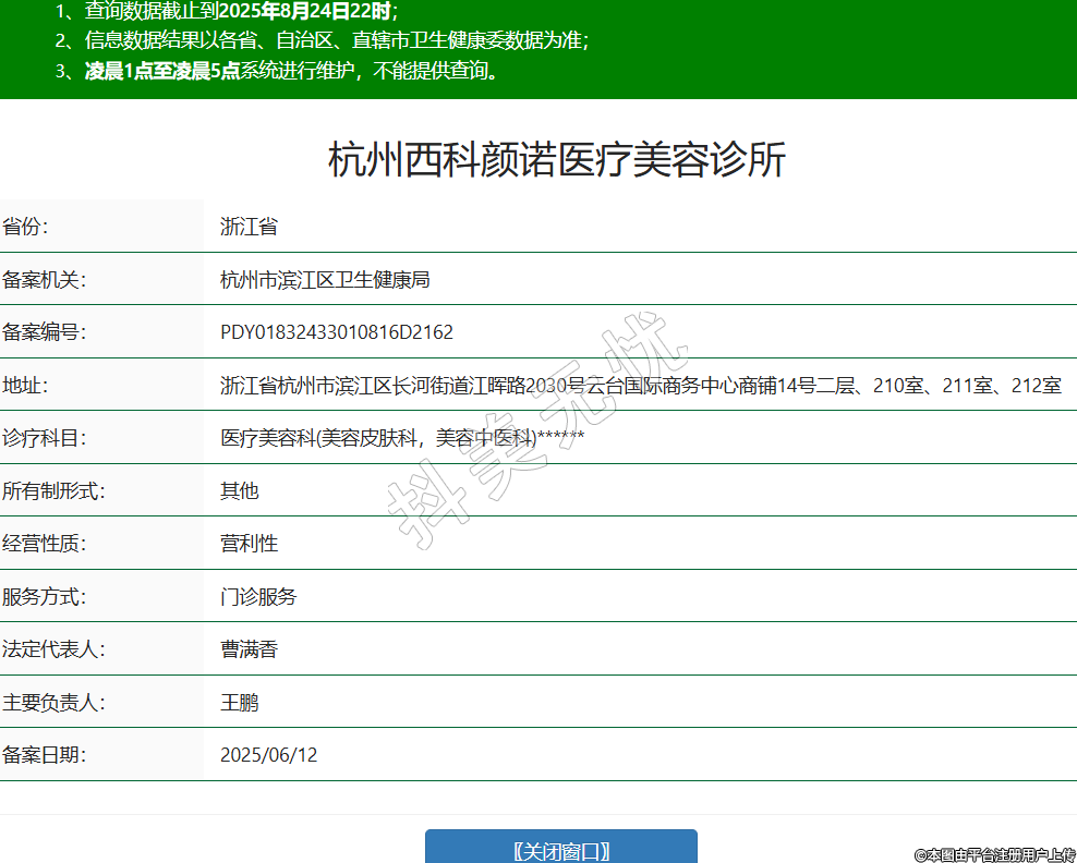 省份:浙江省備案機關:杭州市濱江區(qū)衛(wèi)生健康局備案編號:PDY01832433010816D2162地址:浙江省杭州市濱江區(qū)長河街道江暉路2030號云臺國際商務中心商鋪14號二層、210室、211室、212室診療科目:醫(yī)療美容科(美容皮膚科,美容中醫(yī)科)******所有制形式:其他經(jīng)營性質:營利性服務方式:門診服務法定代表人:曹滿香主要負責人:王鵬備案日期:2025/06/12 -