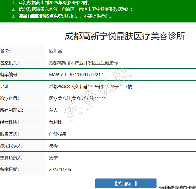 成都高新寧悅晶膚醫(yī)療美容診所,診療科目:醫(yī)療美容科(美容皮膚科)******