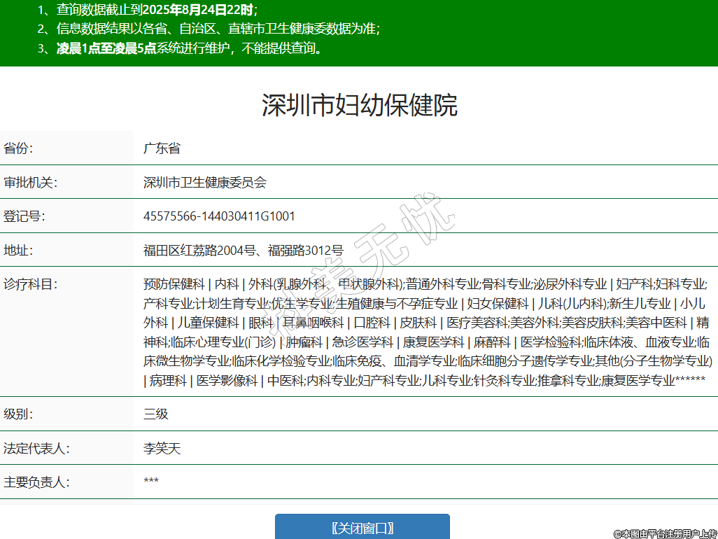 省份:廣東省審批機(jī)關(guān):深圳市衛(wèi)生健康委員會(huì)登記號(hào):45575566-144030411G1001地址:福田區(qū)紅荔路2004號(hào)、福強(qiáng)路3012號(hào)診療科目:預(yù)防保健科 | 內(nèi)科 | 外科(乳腺外科、甲狀腺外科);普通外科專業(yè);骨科專業(yè);泌尿外科專業(yè) | 婦產(chǎn)科;婦科專業(yè);產(chǎn)科專業(yè);計(jì)劃生育專業(yè);優(yōu)生學(xué)專業(yè);生殖健康與不孕癥專業(yè) | 婦女保健科 | 兒科(兒內(nèi)科);新生兒專業(yè) | 小兒外科 | 兒童保健科 | 眼科 | 耳鼻咽喉科 | 口腔科 | 皮膚科 | 醫(yī)療美容科;美容外科;美容皮膚科;美容中醫(yī)科 | 精神科;臨床心理專業(yè)(門診) | 腫瘤科 | 急診醫(yī)學(xué)科 | 康復(fù)醫(yī)學(xué)科 | 麻醉科 | 醫(yī)學(xué)檢驗(yàn)科;臨床體液、血液專業(yè);臨床微生物學(xué)專業(yè);臨床化學(xué)檢驗(yàn)專業(yè);臨床免疫、血清學(xué)專業(yè);臨床細(xì)胞分子遺傳學(xué)專業(yè);其他(分子生物學(xué)專業(yè)) | 病理科 | 醫(yī)學(xué)影像科 | 中醫(yī)科;內(nèi)科專業(yè);婦產(chǎn)科專業(yè);兒科專業(yè);針灸科專業(yè);推拿科專業(yè);康復(fù)醫(yī)學(xué)專業(yè)******級(jí)別:三級(jí)法定代表人:李笑天主要負(fù)責(zé)人:***執(zhí)業(yè)許可證有效期:2022/05/09 -至- 2037/05/08 -