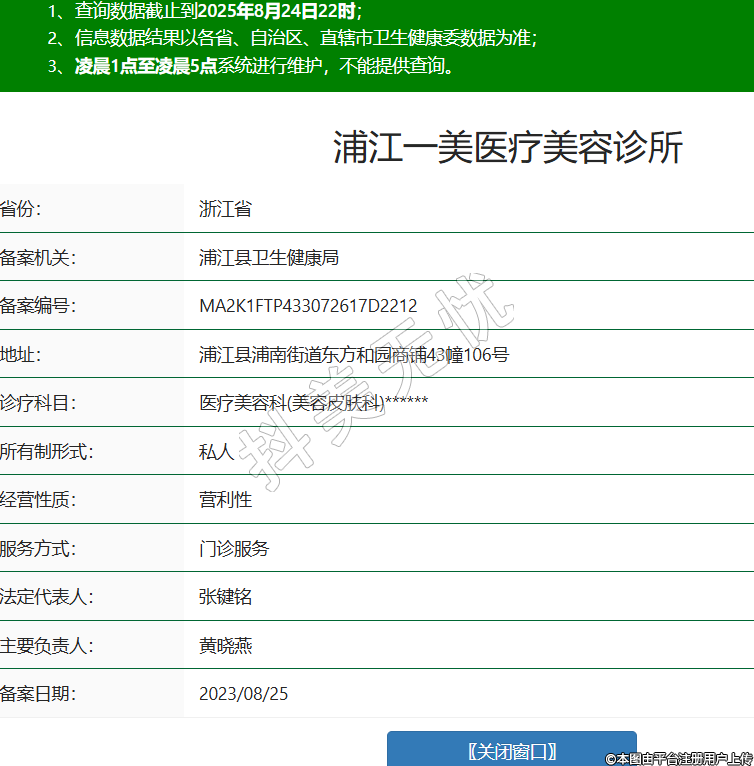 省份:浙江省備案機(jī)關(guān):浦江縣衛(wèi)生健康局備案編號(hào):MA2K1FTP433072617D2212地址:浦江縣浦南街道東方和園商鋪43幢106號(hào)診療科目:醫(yī)療美容科(美容皮膚科)******所有制形式:私人經(jīng)營(yíng)性質(zhì):營(yíng)利性服務(wù)方式:門診服務(wù)法定代表人:張鍵銘主要負(fù)責(zé)人:黃曉燕備案日期:2023/08/25 -