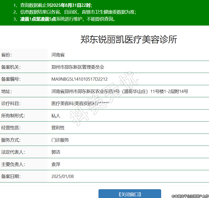 鄭東銳麗凱醫(yī)療美容診所,診療科目:醫(yī)療美容科(美容皮膚科)******
