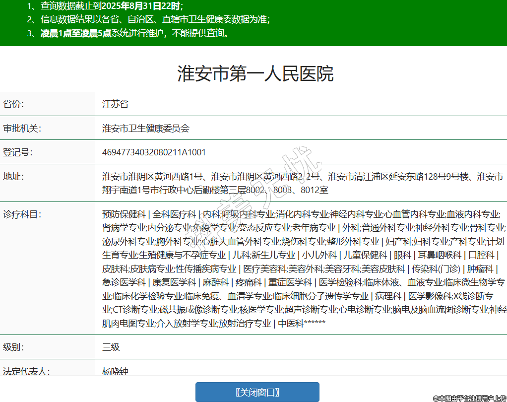 省份:江蘇省審批機(jī)關(guān):淮安市衛(wèi)生健康委員會(huì)登記號(hào):46947734032080211A1001地址:淮安市淮陰區(qū)黃河西路1號(hào)、淮安市淮陰區(qū)黃河西路2-2號(hào)、淮安市清江浦區(qū)延安東路128號(hào)9號(hào)樓、淮安市翔宇南道1號(hào)市行政中心后勤樓第三層8002、8003、8012室診療科目:預(yù)防保健科 | 全科醫(yī)療科 | 內(nèi)科;呼吸內(nèi)科專業(yè);消化內(nèi)科專業(yè);神經(jīng)內(nèi)科專業(yè);心血管內(nèi)科專業(yè);血液內(nèi)科專業(yè);腎病學(xué)專業(yè);內(nèi)分泌專業(yè);免疫學(xué)專業(yè);變態(tài)反應(yīng)專業(yè);老年病專業(yè) | 外科;普通外科專業(yè);神經(jīng)外科專業(yè);骨科專業(yè);泌尿外科專業(yè);胸外科專業(yè);心臟大血管外科專業(yè);燒傷科專業(yè);整形外科專業(yè) | 婦產(chǎn)科;婦科專業(yè);產(chǎn)科專業(yè);計(jì)劃生育專業(yè);生殖健康與不孕癥專業(yè) | 兒科;新生兒專業(yè) | 小兒外科 | 兒童保健科 | 眼科 | 耳鼻咽喉科 | 口腔科 | 皮膚科;皮膚病專業(yè);性傳播疾病專業(yè) | 醫(yī)療美容科;美容外科;美容牙科;美容皮膚科 | 傳染科(門診) | 腫瘤科 | 急診醫(yī)學(xué)科 | 康復(fù)醫(yī)學(xué)科 | 麻醉科 | 疼痛科 | 重癥醫(yī)學(xué)科 | 醫(yī)學(xué)檢驗(yàn)科;臨床體液、血液專業(yè);臨床微生物學(xué)專業(yè);臨床化學(xué)檢驗(yàn)專業(yè);臨床免疫、血清學(xué)專業(yè);臨床細(xì)胞分子遺傳學(xué)專業(yè) | 病理科 | 醫(yī)學(xué)影像科;X線診斷專業(yè);CT診斷專業(yè);磁共振成像診斷專業(yè);核醫(yī)學(xué)專業(yè);超聲診斷專業(yè);心電診斷專業(yè);腦電及腦血流圖診斷專業(yè);神經(jīng)肌肉電圖專業(yè);介入放射學(xué)專業(yè);放射治療專業(yè) | 中醫(yī)科******級(jí)別:三級(jí)法定代表人:楊曉鐘主要負(fù)責(zé)人:楊曉鐘執(zhí)業(yè)許可證有效期:2024/04/09 -至- 2036/01/19 -