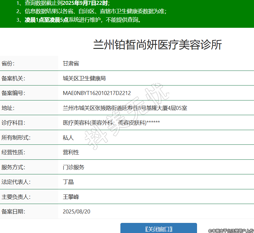 省份:甘肅省備案機(jī)關(guān):城關(guān)區(qū)衛(wèi)生健康局備案編號:MAE0NBYT162010217D2212地址:蘭州市城關(guān)區(qū)張掖路街道延壽巷8號基隆大廈4層05室診療科目:醫(yī)療美容科(美容外科、美容皮膚科)******所有制形式:私人經(jīng)營性質(zhì):營利性服務(wù)方式:門診服務(wù)法定代表人:丁晶主要負(fù)責(zé)人:王攀峰備案日期:2025/08/20 -
