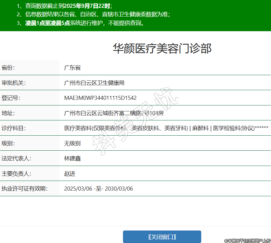 省份:廣東省審批機(jī)關(guān):廣州市白云區(qū)衛(wèi)生健康局登記號:MAE3M0WP344011115D1542地址:廣州市白云區(qū)云城街齊富二橫路2號104房診療科目:醫(yī)療美容科(僅限美容外科、美容皮膚科、美容牙科) | 麻醉科 | 醫(yī)學(xué)檢驗科(協(xié)議)******級別:無級別法定代表人:林建鑫主要負(fù)責(zé)人:趙進(jìn)執(zhí)業(yè)許可證有效期:2025/03/06 -至- 2030/03/06 -